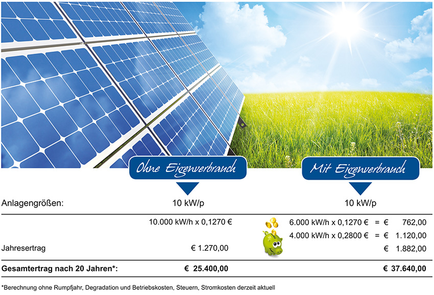 Es lohnt sich deshalb mehr denn je, selbst erzeugten Sonnenstrom selbst zu verbrauchen und nur den Überschuss ins Netz einzuspeisen.